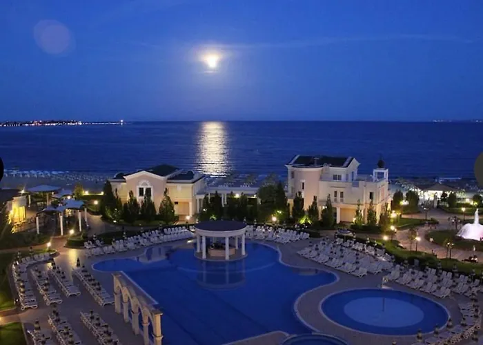 The 5-star hotel is about 10 km from Burgas airport and 3.9 km from such cultural venues as the Historical Museum of Pomorie. The Church of Saint George is a 20-minute walk away. The "Красавиците Тъмнокоси" Sunset Resort lies within a few blocks of Sunset Waterpark.